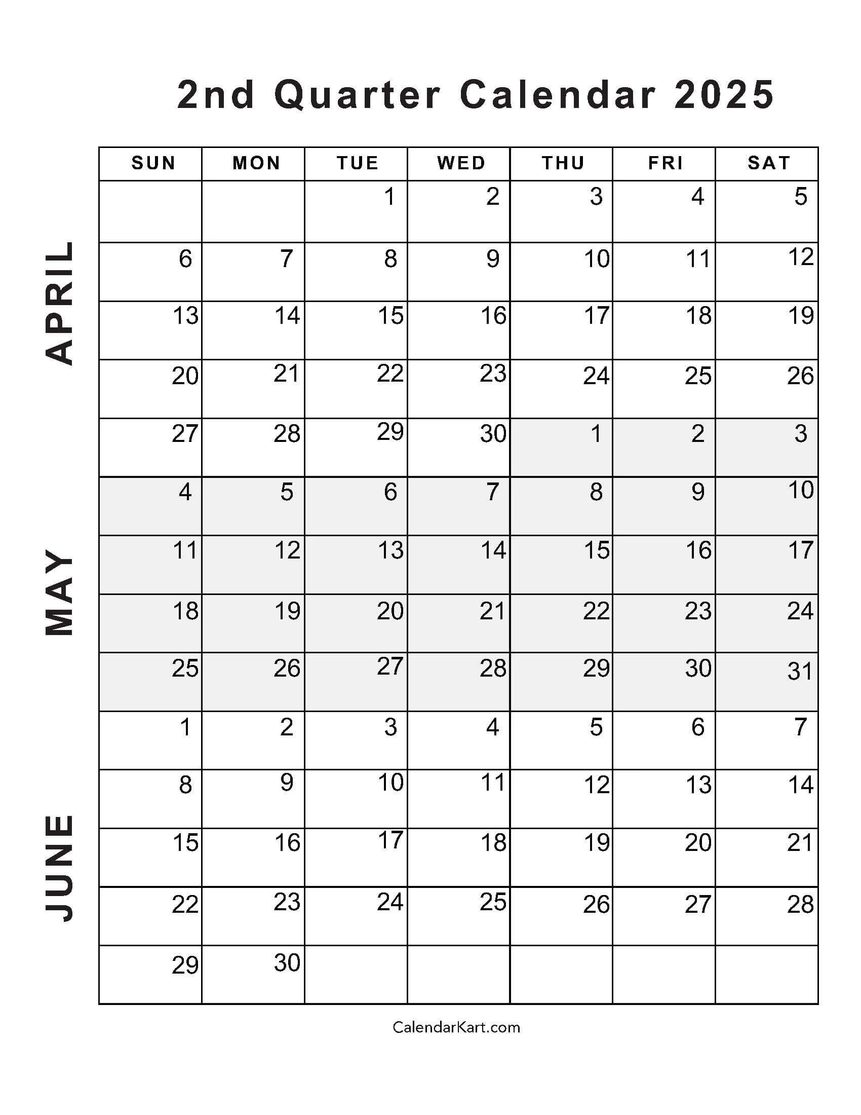 April To June 2025 Calendars Q2 Free Printables