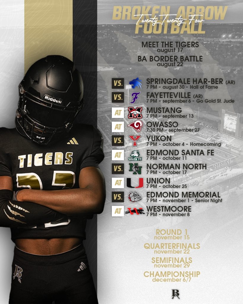 Broken Arrow Football Schedule Release 2024 BA Tiger Sports