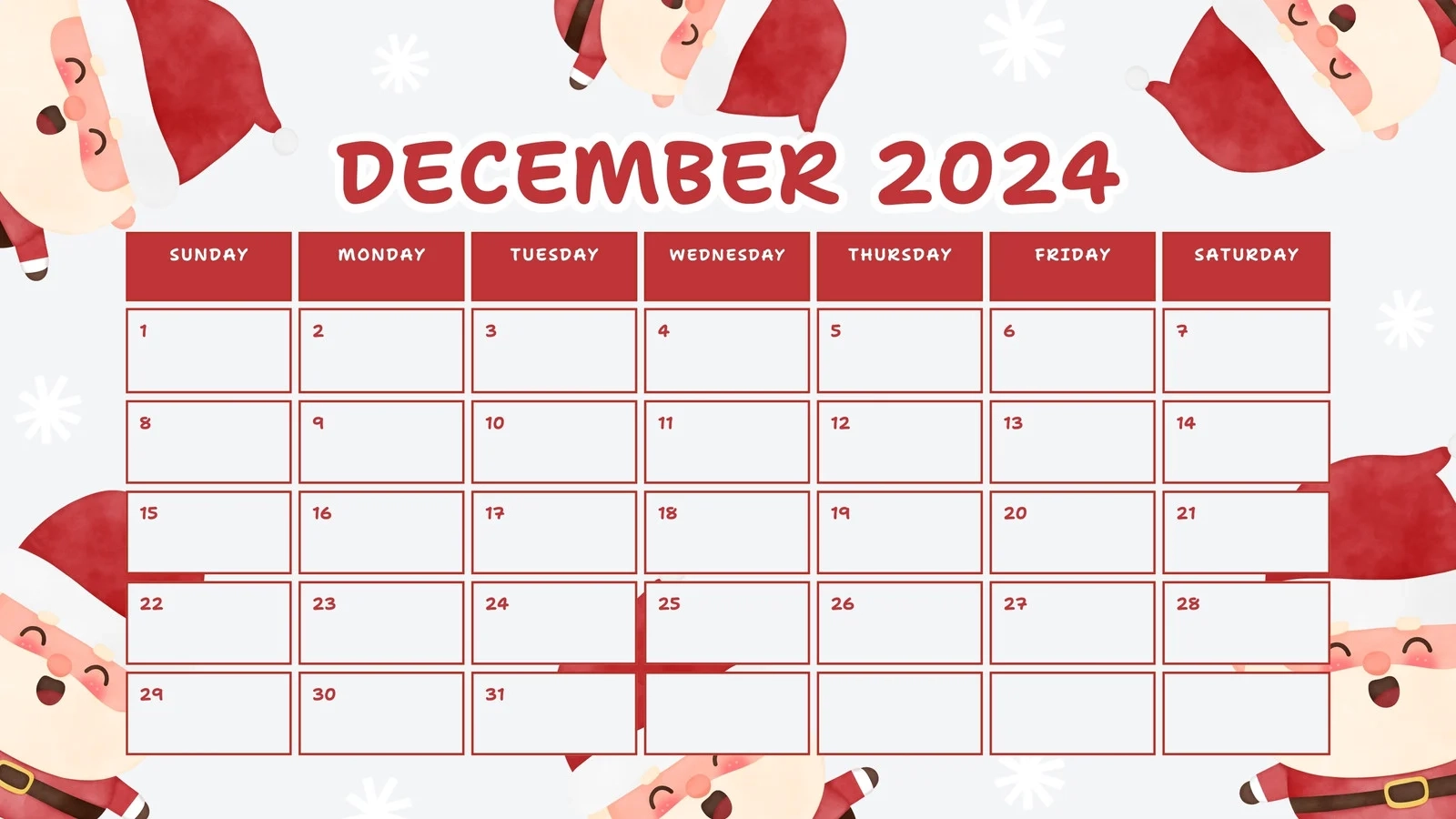 Christmas December Calendar Printable