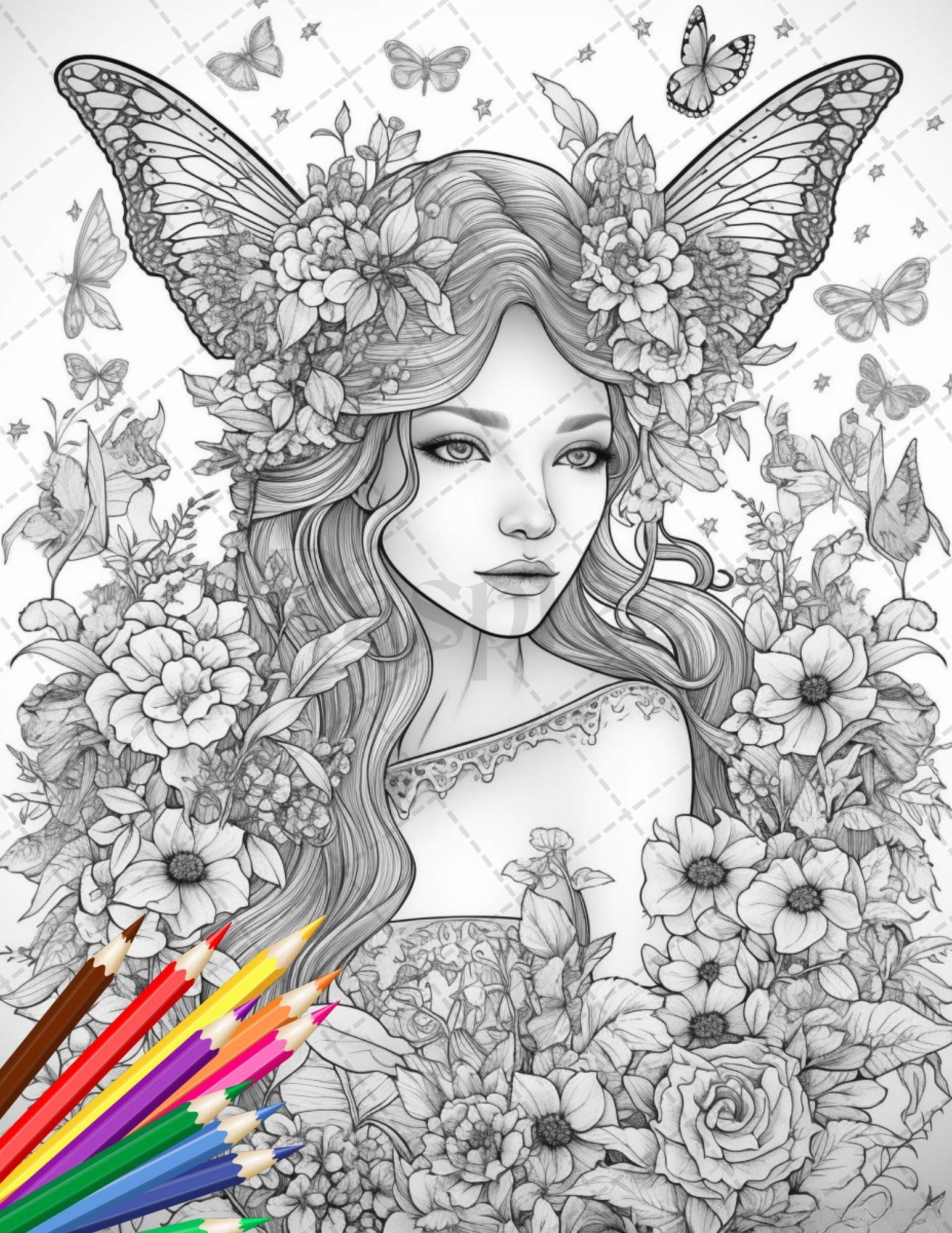 30 Beautiful Fairies Coloring Page Book For Adults Flower Fairy Grays RASPIEE