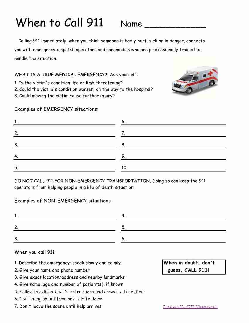 Free Printable 911 Worksheets