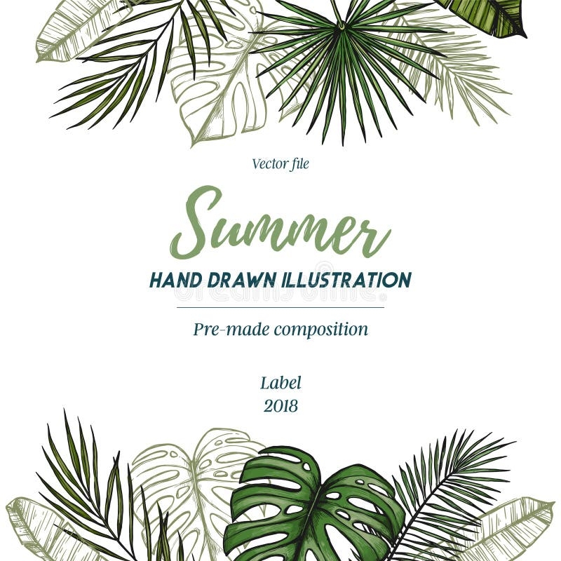 Summer Tropical Exotic Template Label With Palm Leaves Monster