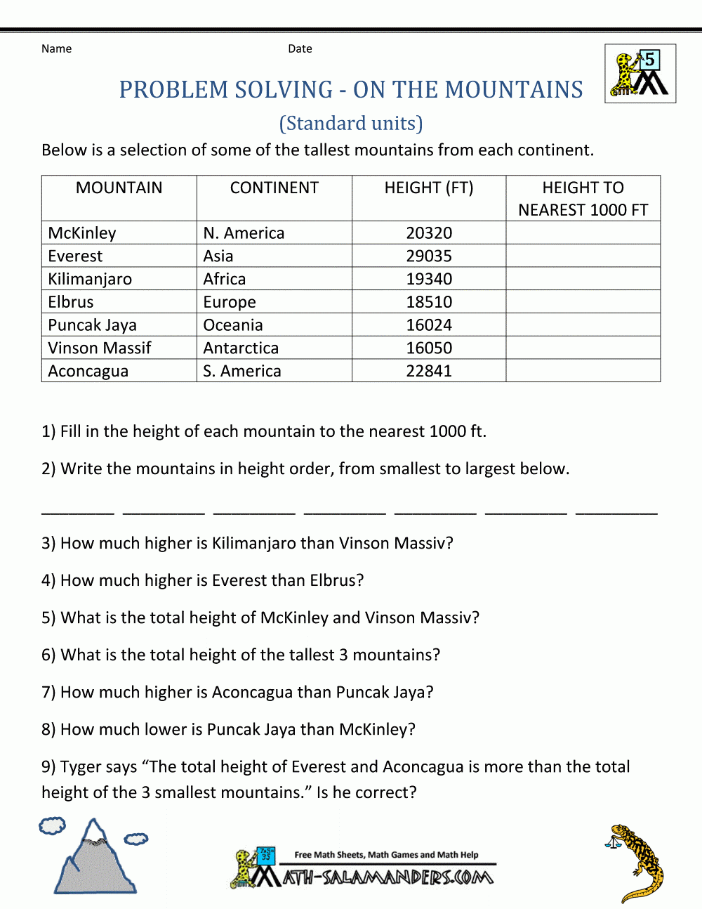 Mountain Math Worksheet 5th Grade Download Printable PDF Templateroller