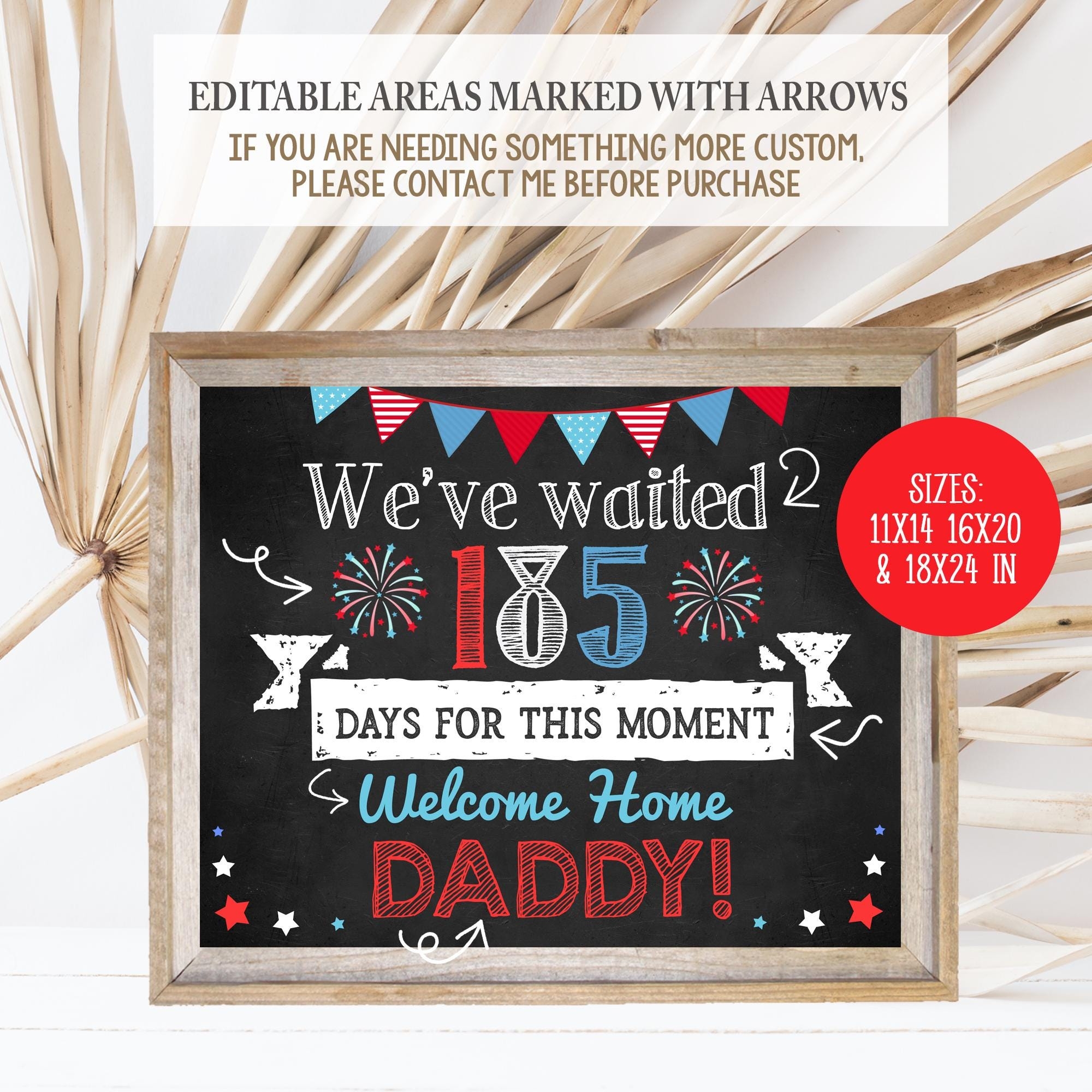 Editable Welcome Home Daddy Kids Sign Military Red White Blue