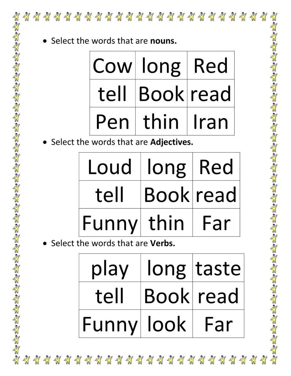 Adjectives Verbs And Nouns Again Worksheet Live Worksheets Worksheets Library