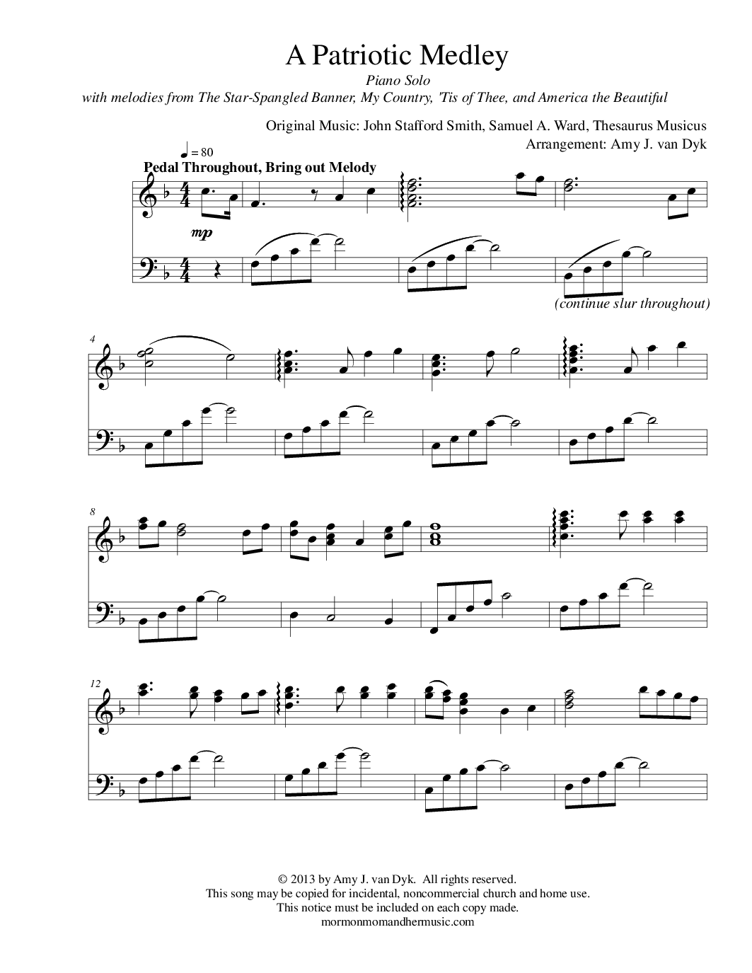 A Patriotic Medley by Amy J Van Dyk Piano Solo