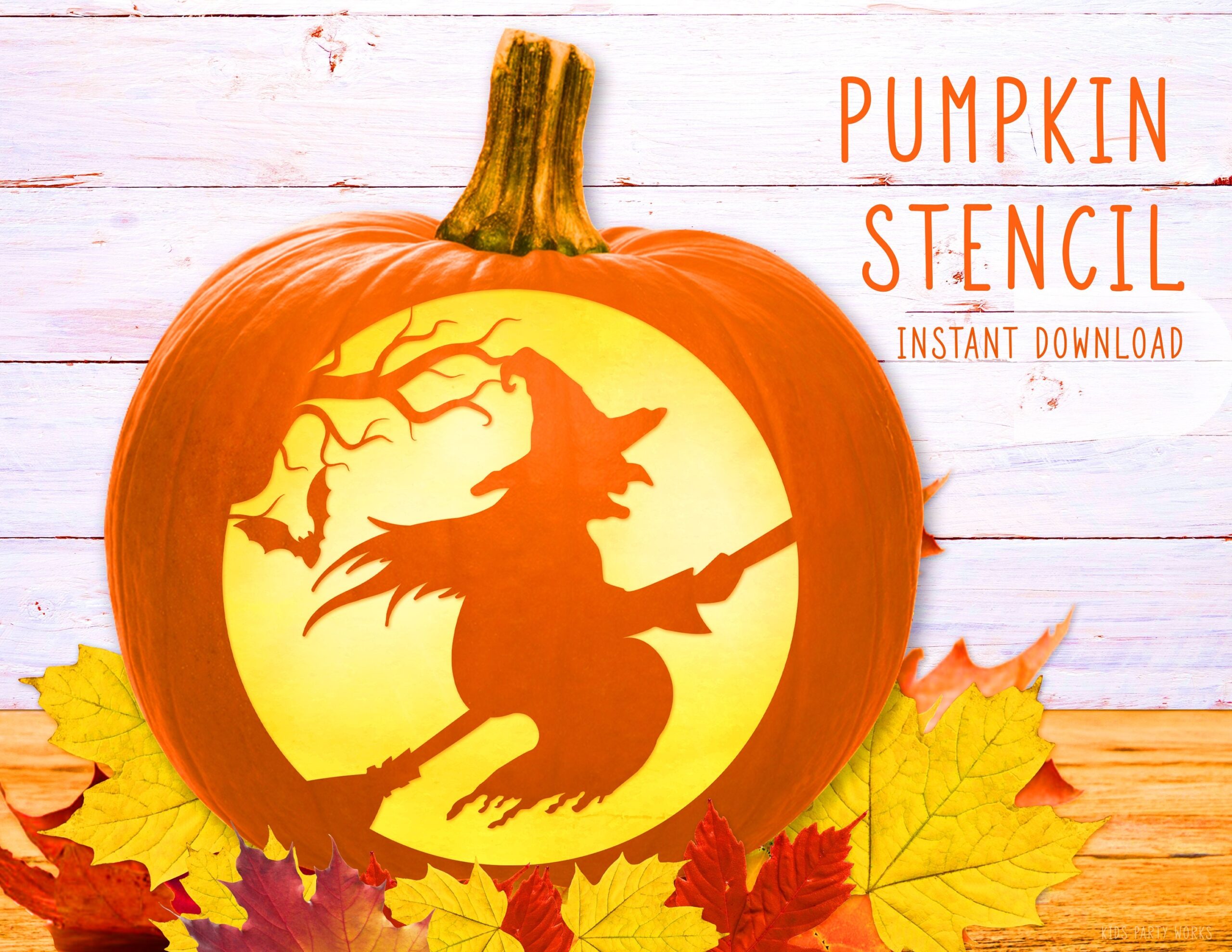 Printable Witch Pumpkin Carving Stencil Halloween Pumpkin Carving Template Witch Jack o lantern Stencil Etsy UK