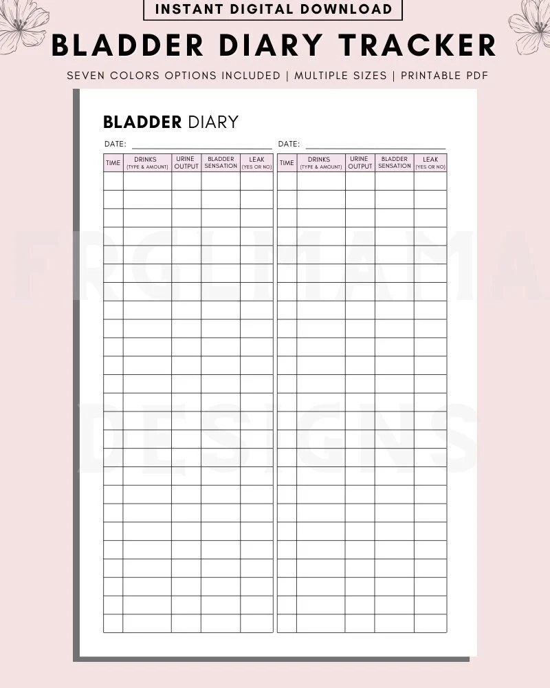 Bladder Diary Tracker Printable Urination Events Features Symptoms Frequent Urination Tracker Health Printable Bladder Void Log Track Etsy