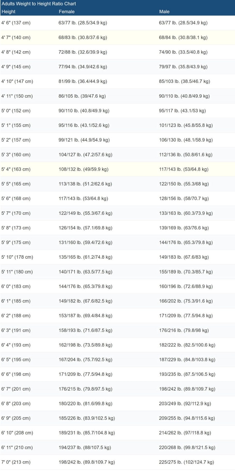 Printable Height To Weight Chart For Adults DW