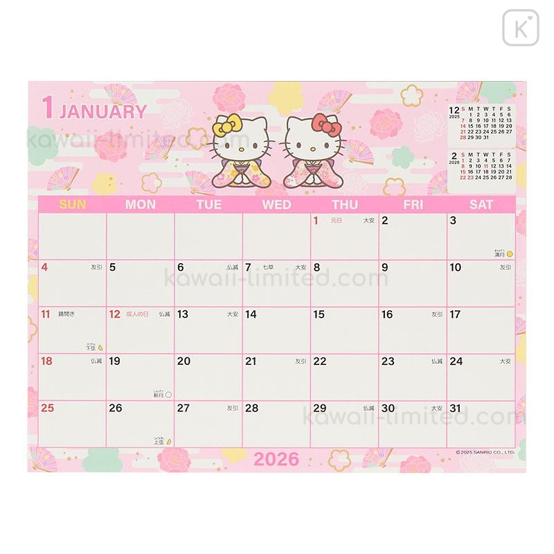 Japan Sanrio Original Sheet Calendar Hello Kitty 2026 Kawaii Limited