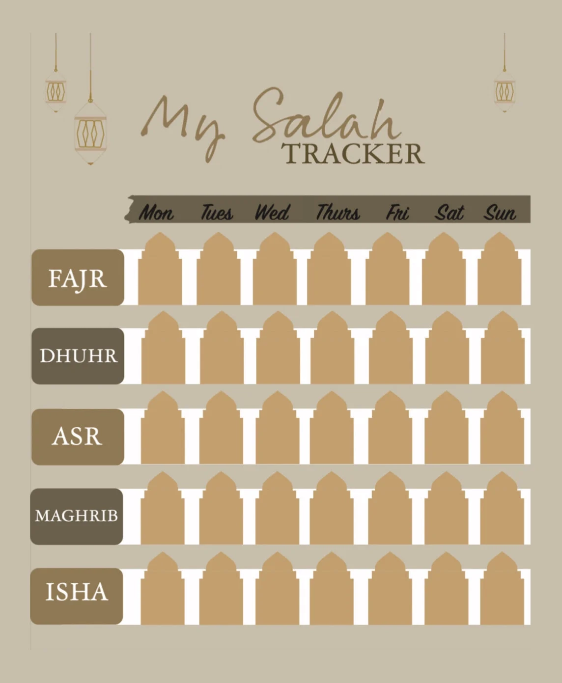 Islamic Prayer Chart Printable