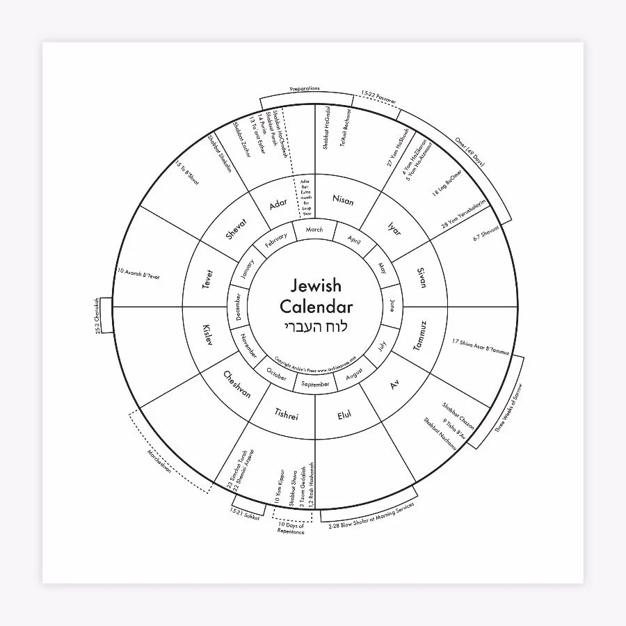Jewish Holiday Calendar Print 5786 2025 2026 Frame Not Included