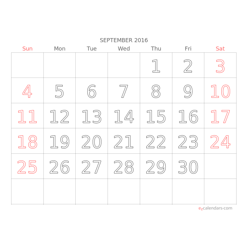 Big Letters Big Numbers Monthly Calendar EzCalendars