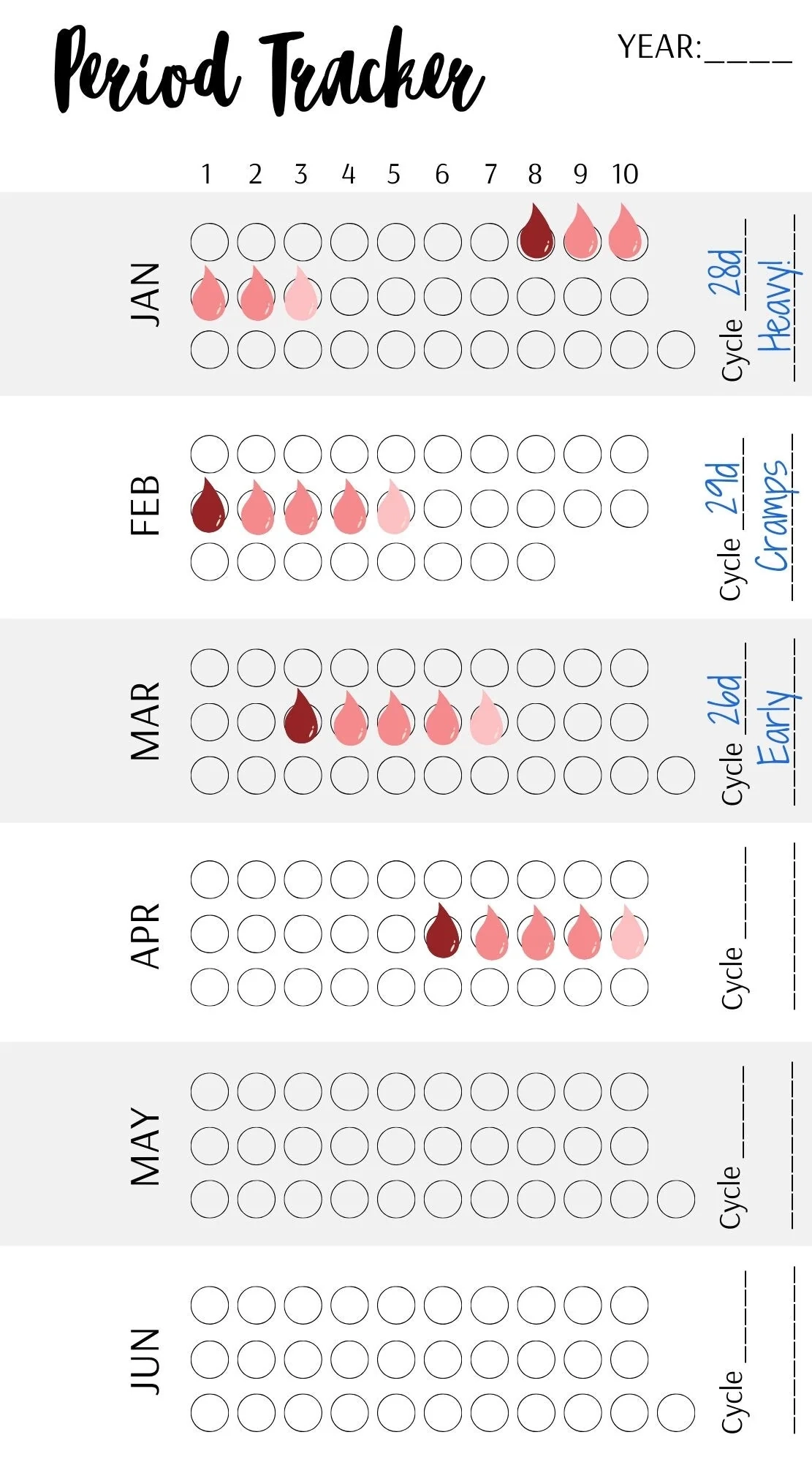 Period Tracker Printable Tracker For Cycle Simple Period Tracker Yearly Menstruation Tracker Printable Period Tracker First