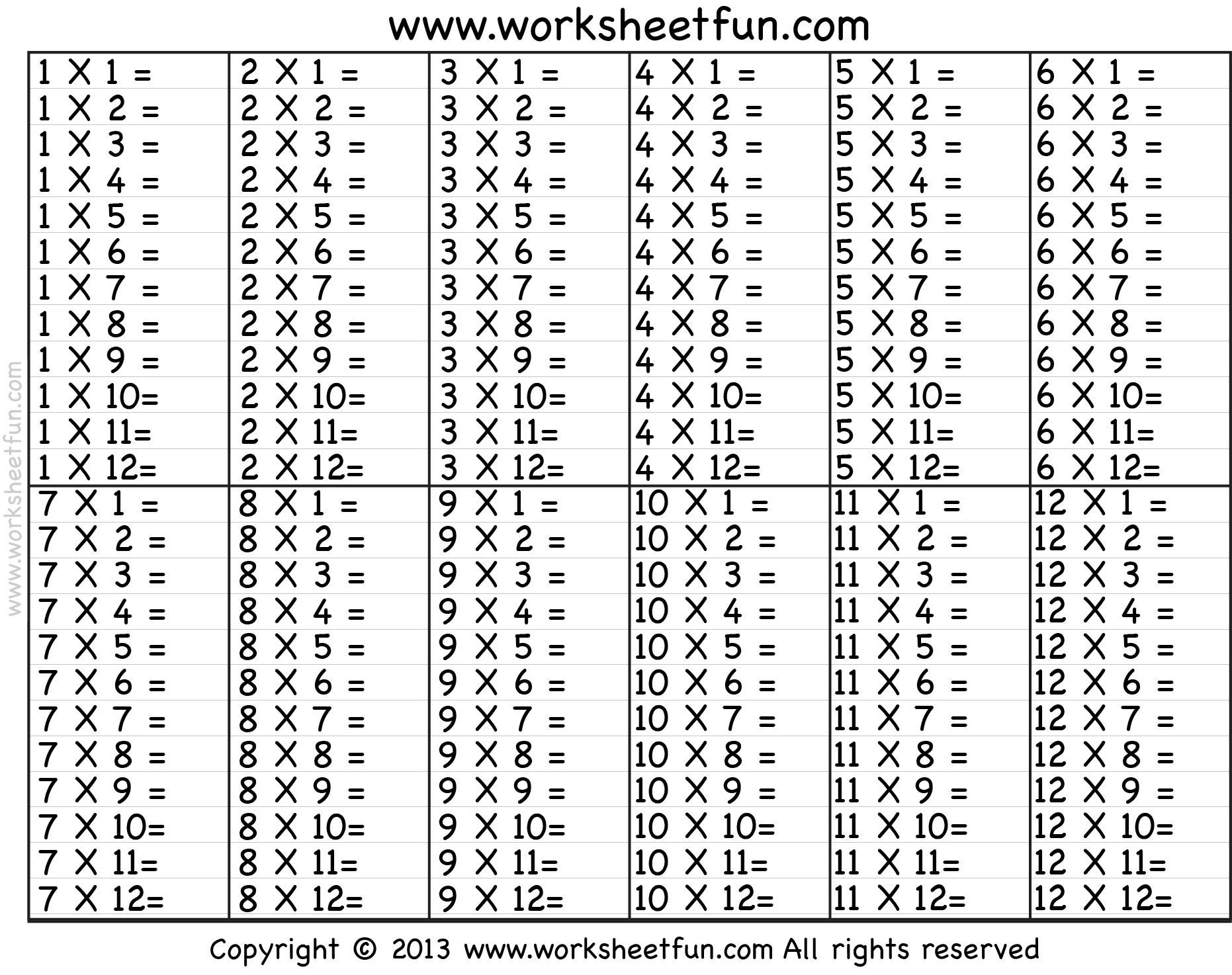 Times Table 2 12 Worksheets 1 2 3 4 5 6 7 8 9 10 11 Worksheets Library