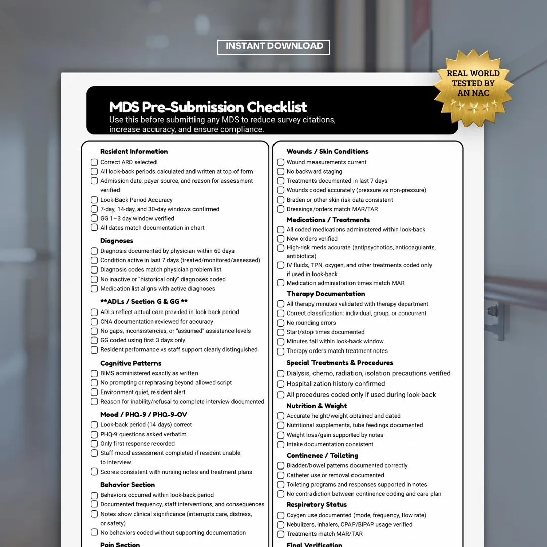 Not only does the PDPM printable MDS assessment cheat sheet help you stay organized, but it also serves as a valuable reference guide. You can quickly reference common MDS assessment codes, criteria for scoring, and other essential information to ensure compliance with regulations.
