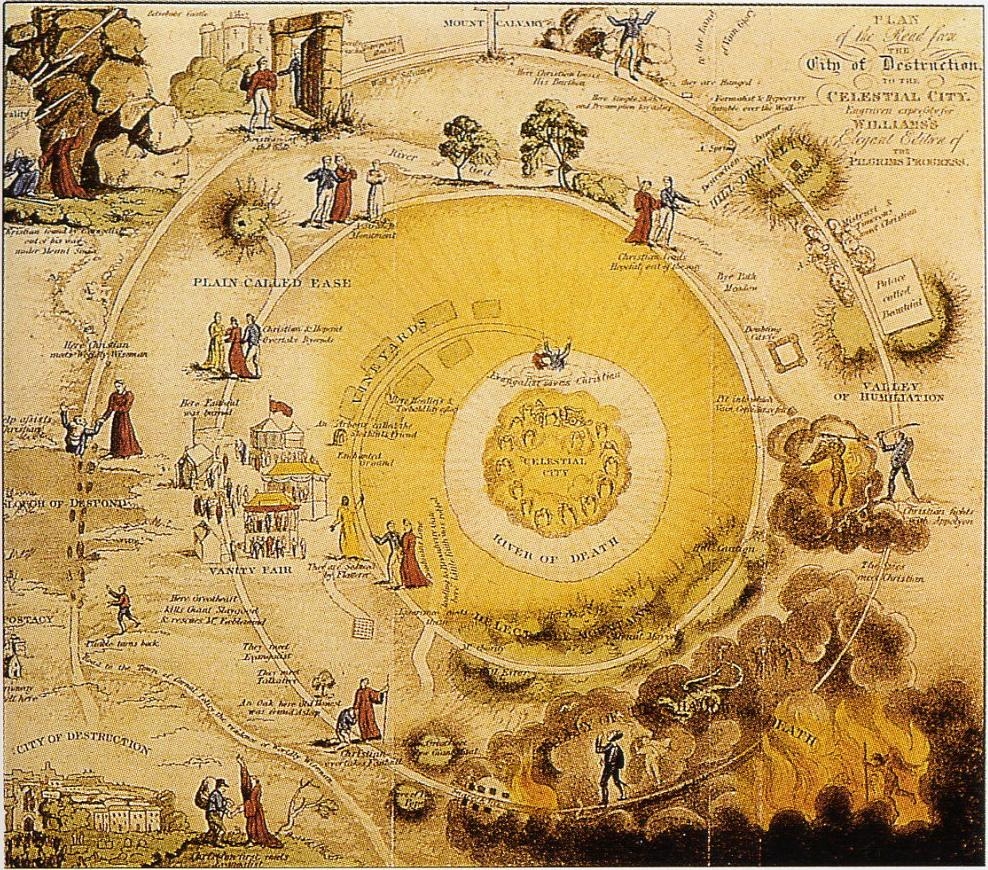 Antique Map Of Pilgrims Progress After John Bunyan Circa 1821