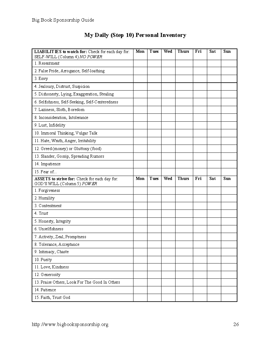 AA Step 10 Nightly Inventory Worksheets Worksheets Library