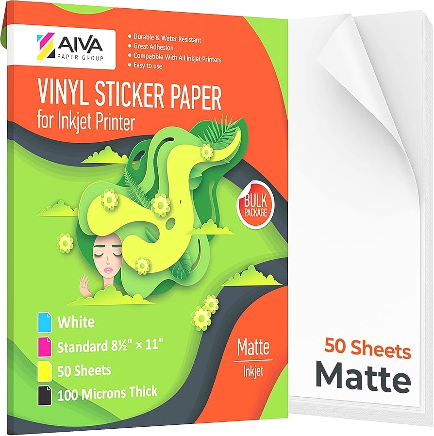 Printable Vinyl Sticker Paper Waterproof Decal Paper For Inkjet Printer 50 Self Adhesive Sheets Matte White Standard Letter Size 8 5 x11 Amazon au Stationery Office Products