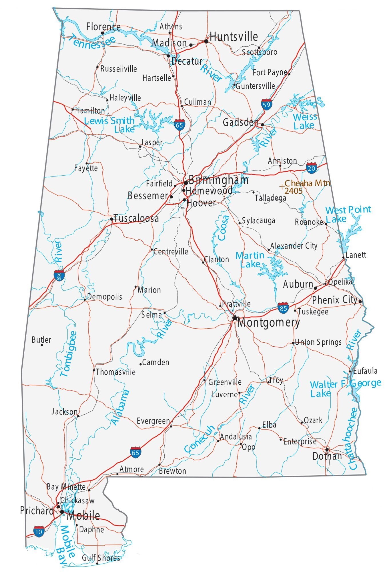 Printable Alabama Map With Cities