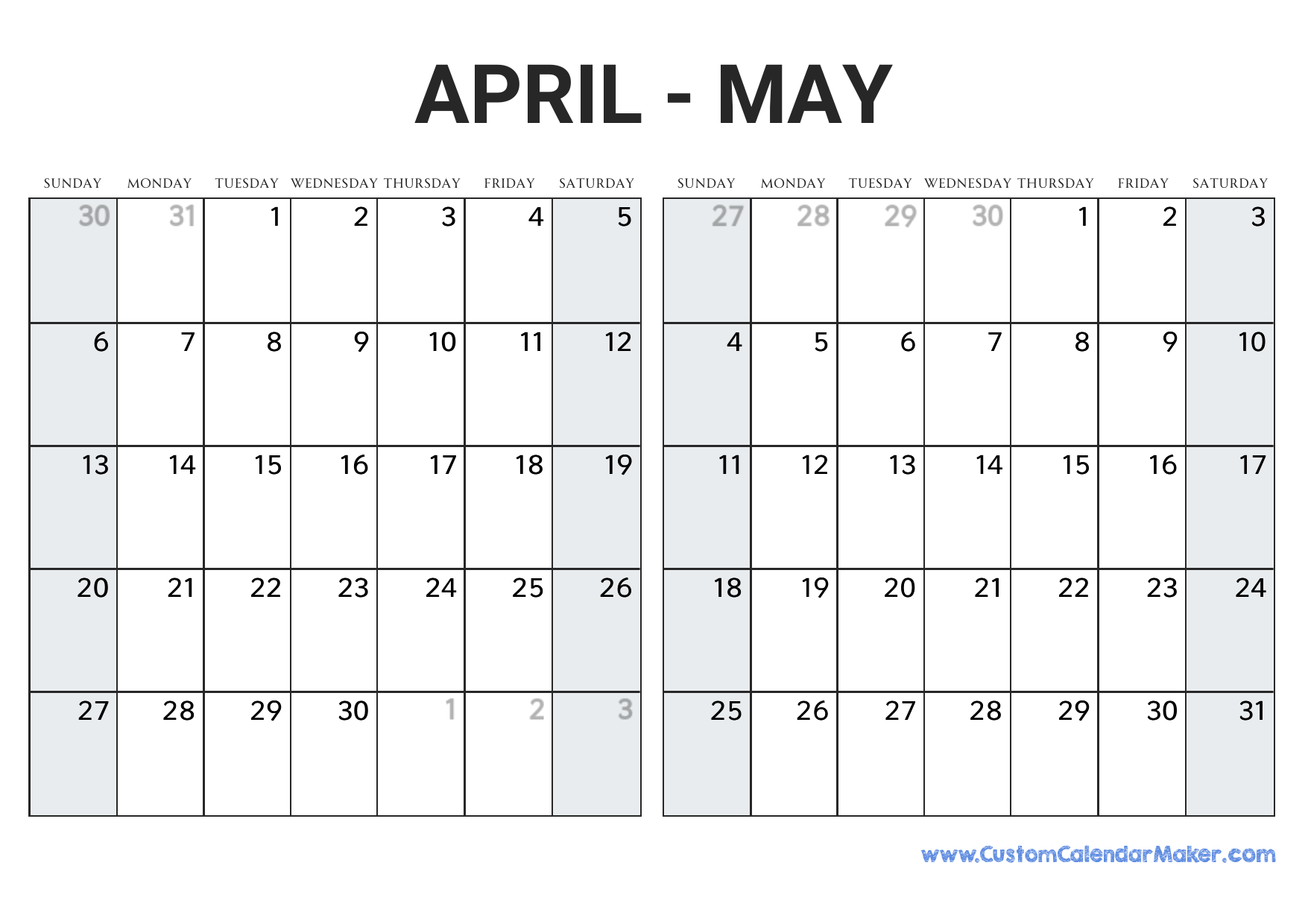 April And May 2025 Calendar Custom Calendar Maker