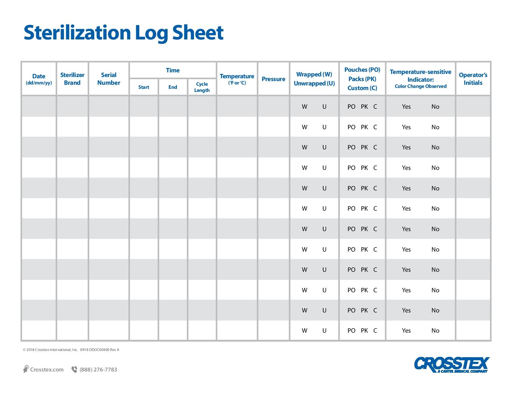 Printable Autoclave Log Sheet Templates