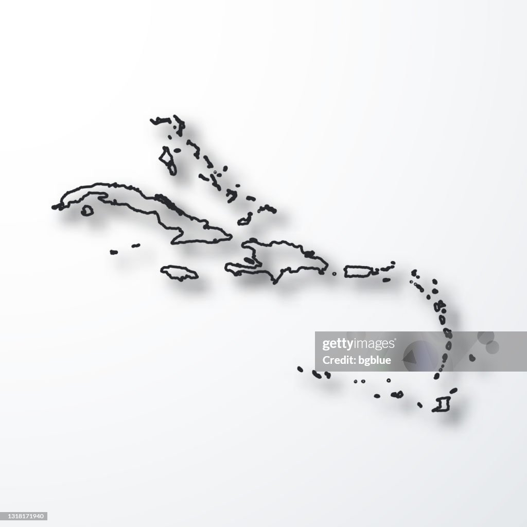 Caribbean Map Black Outline With Shadow On White Background High Res Vector Graphic Getty Images