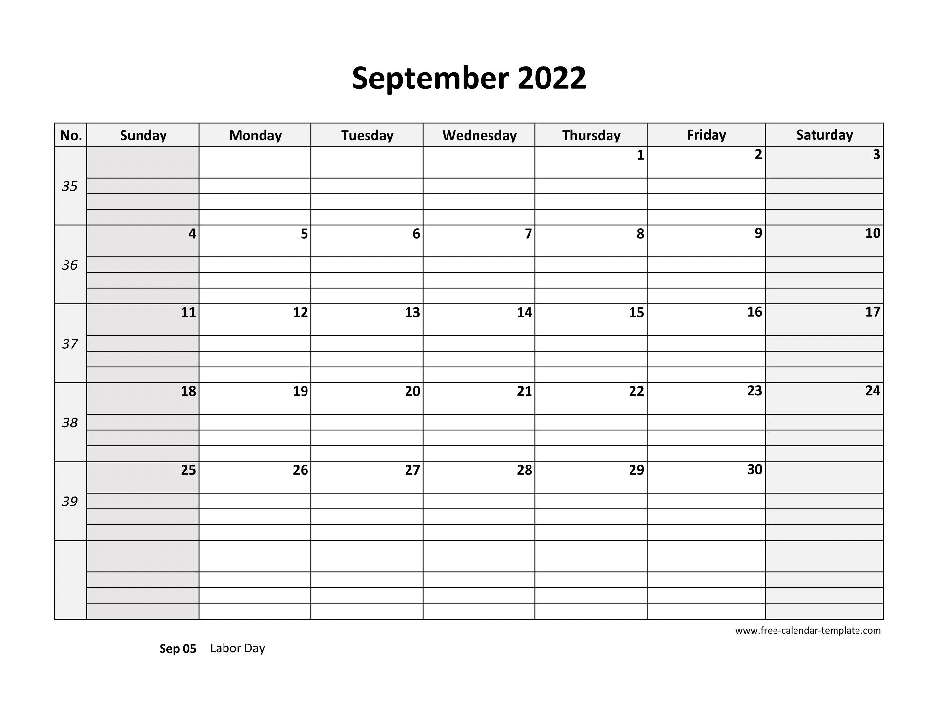 September 2022 Calendar Free Printable With Grid Lines Designed horizontal Free calendar template