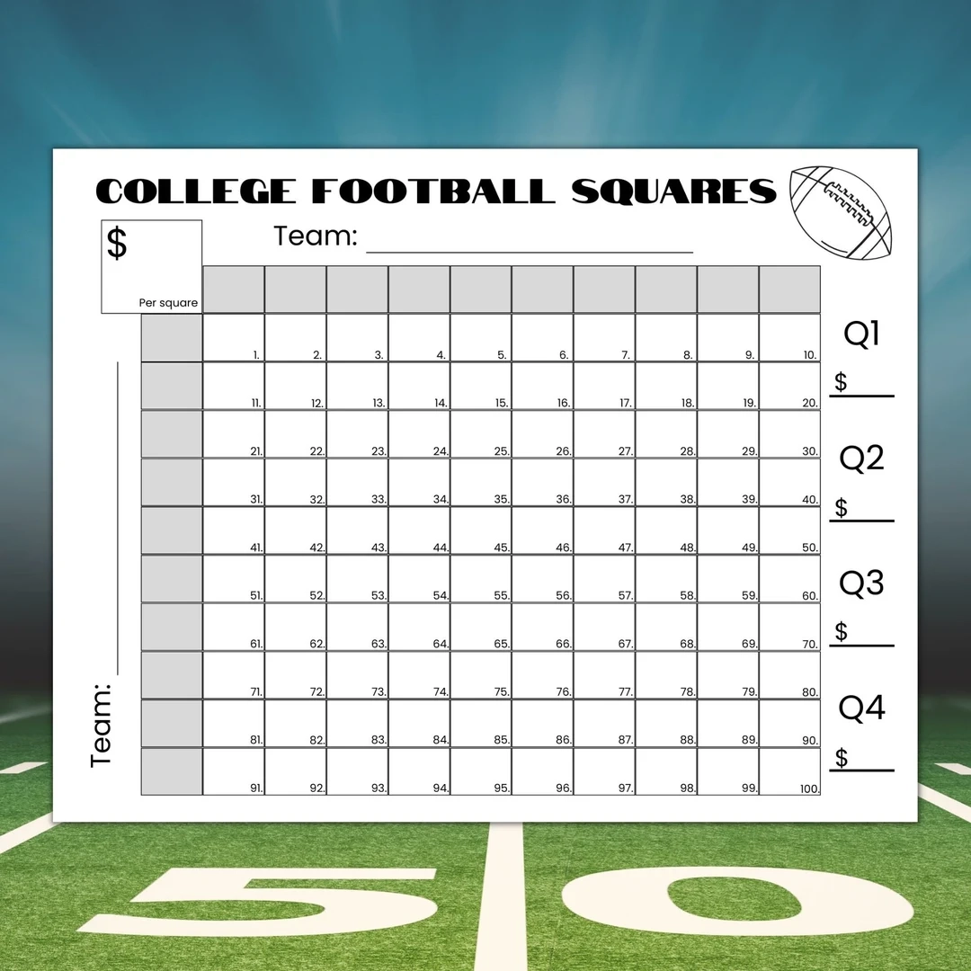 College Football Squares Game Printable Football Fundraiser Football Betting Game Football Square Grid Etsy