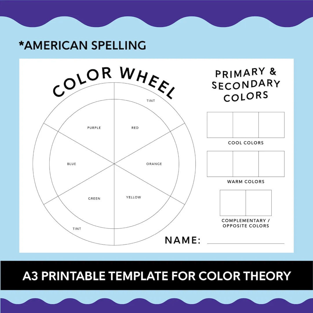 A3 Printable Colour Wheel Template american Basic Primary Secondary Colours Fun Student Lesson Activity Worksheet Painting Class Etsy