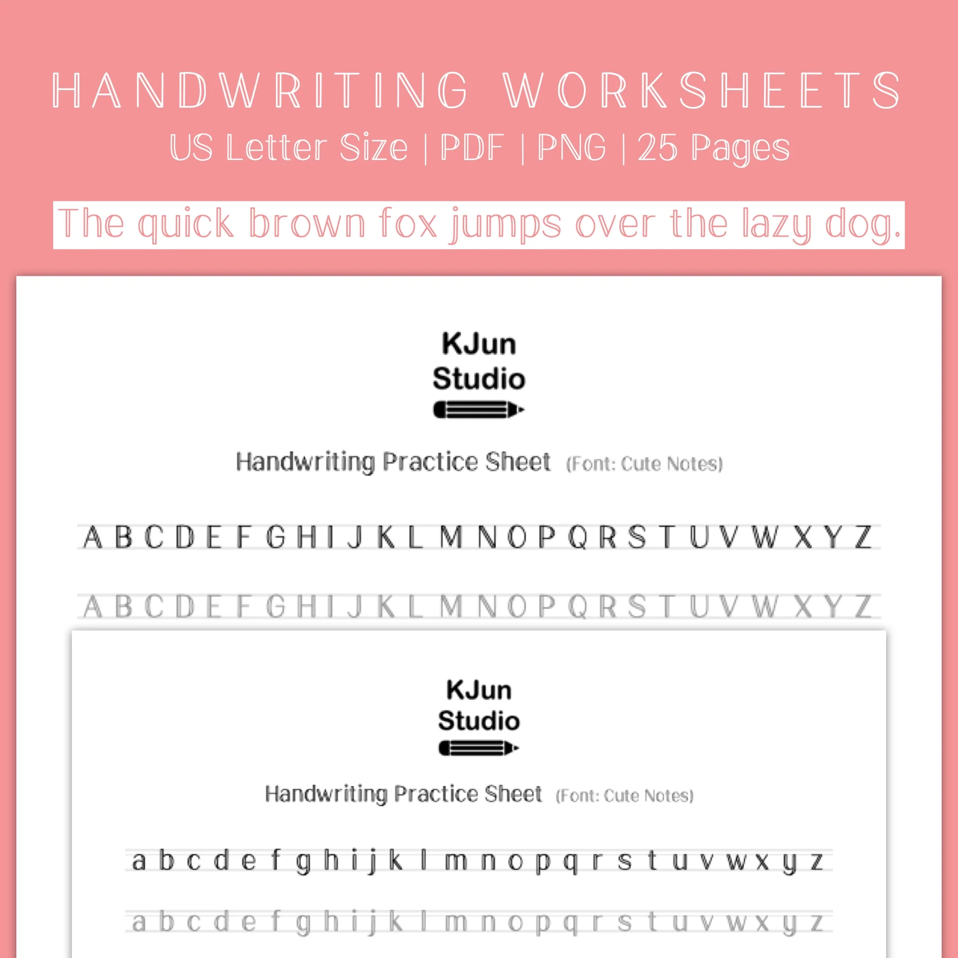 Handwriting Practice Sheets Cute Notes Font Kjunstudio