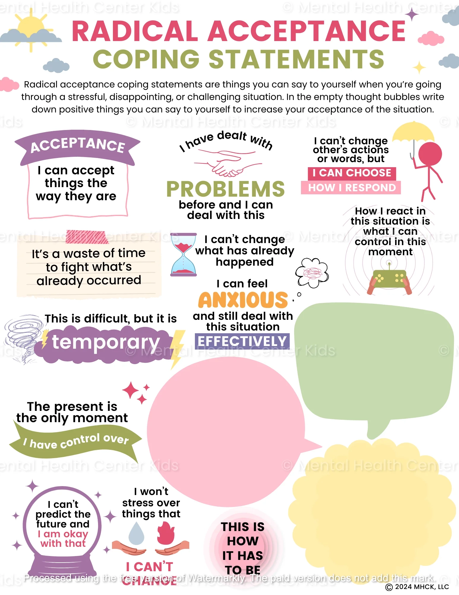 Radical Acceptance Coping Statements PDF Mental Health Center Kids