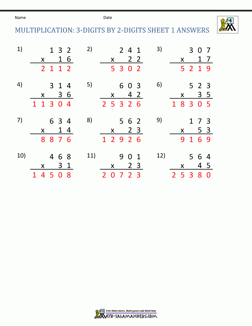 Multiplying With 2 Digit Numbers Printable Multiplication Worksheets