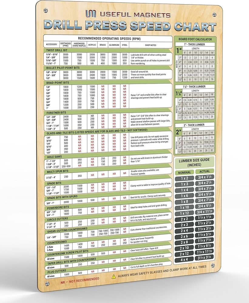 Useful Magnets Drill Press Speed Chart Board Foot Calculator UsefulMagnets Store
