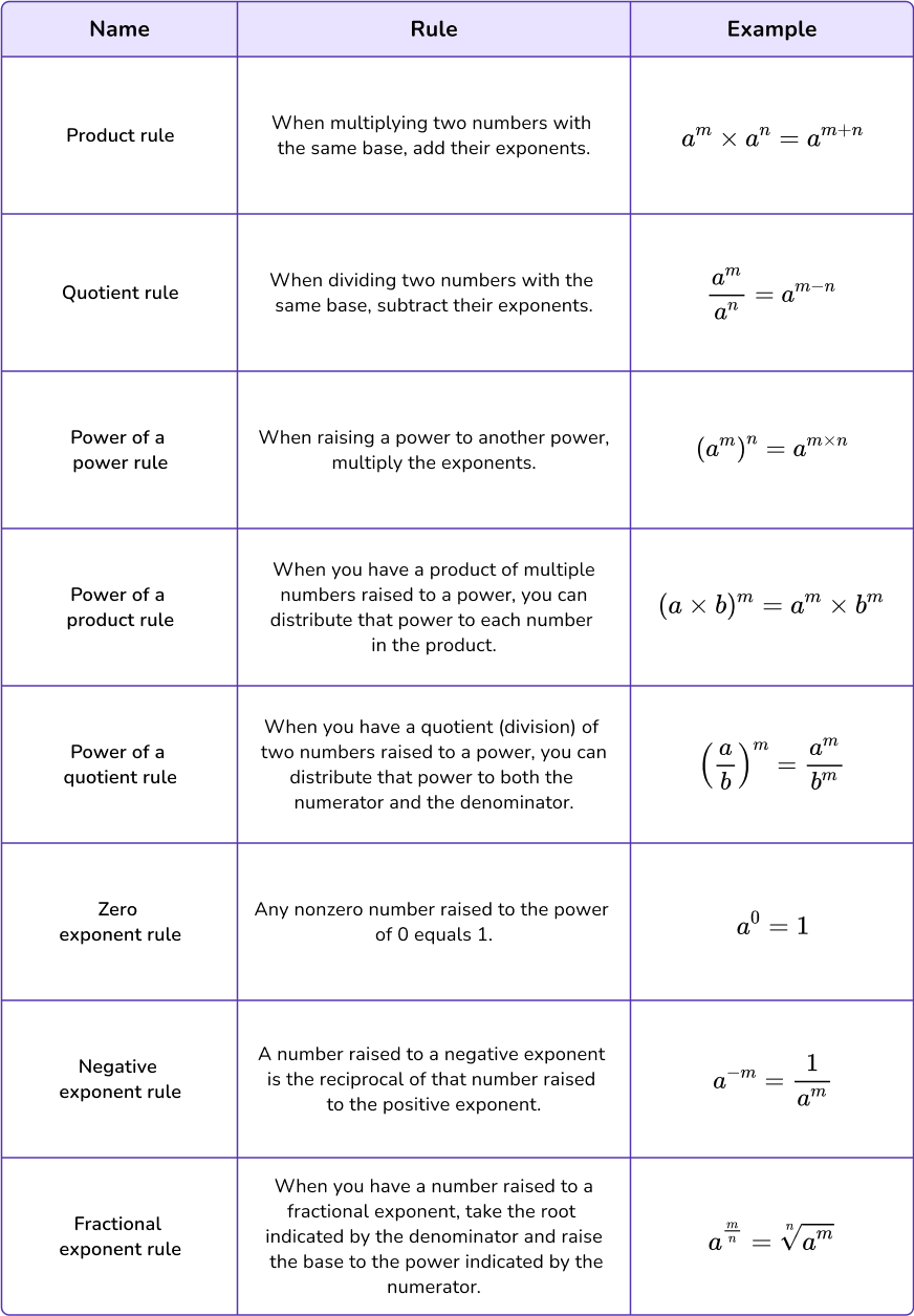 Exponents can be tricky, but with our printable chart, you’ll have all the rules at your fingertips. Whether you need to know how to multiply exponents, divide exponents, or anything in between, this chart has got you covered.