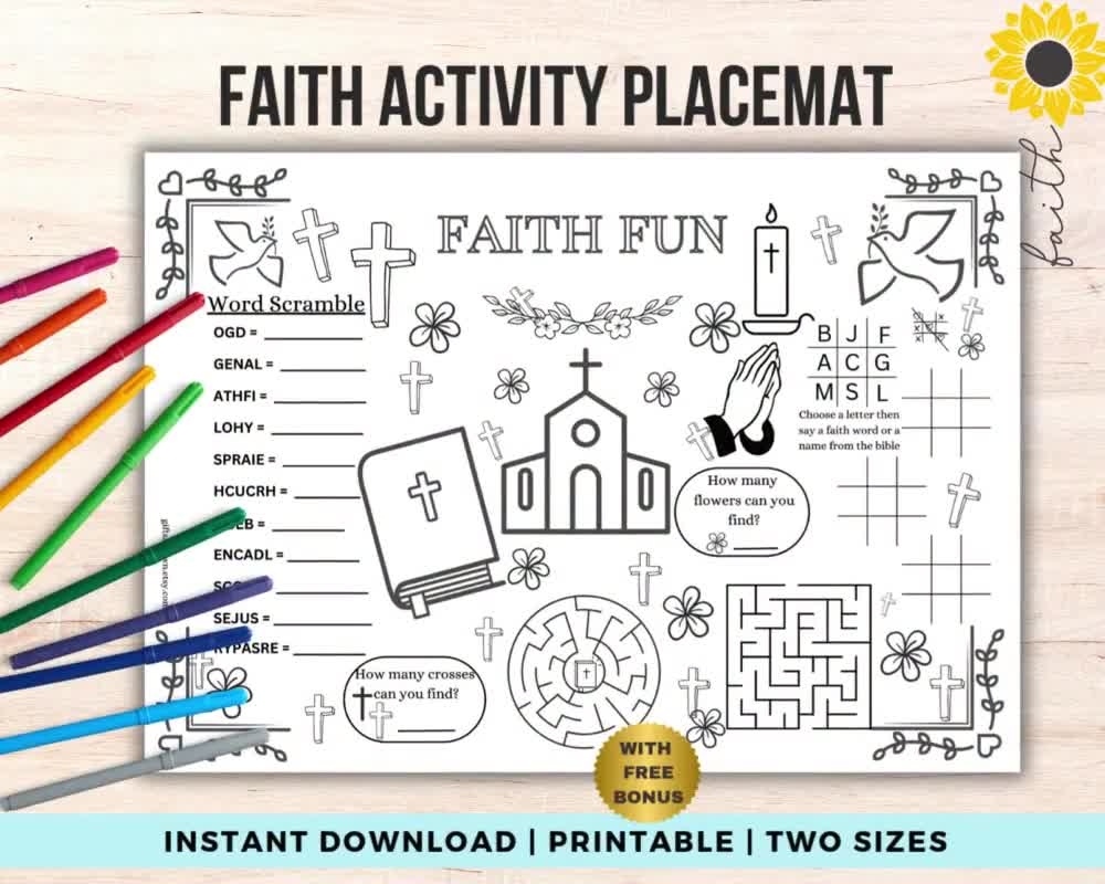 Faith Fun Activity Placemat For Older Children Printable Sunday School Colouring Sheet Instant Download Religious Activities For Kids Bonus Etsy
