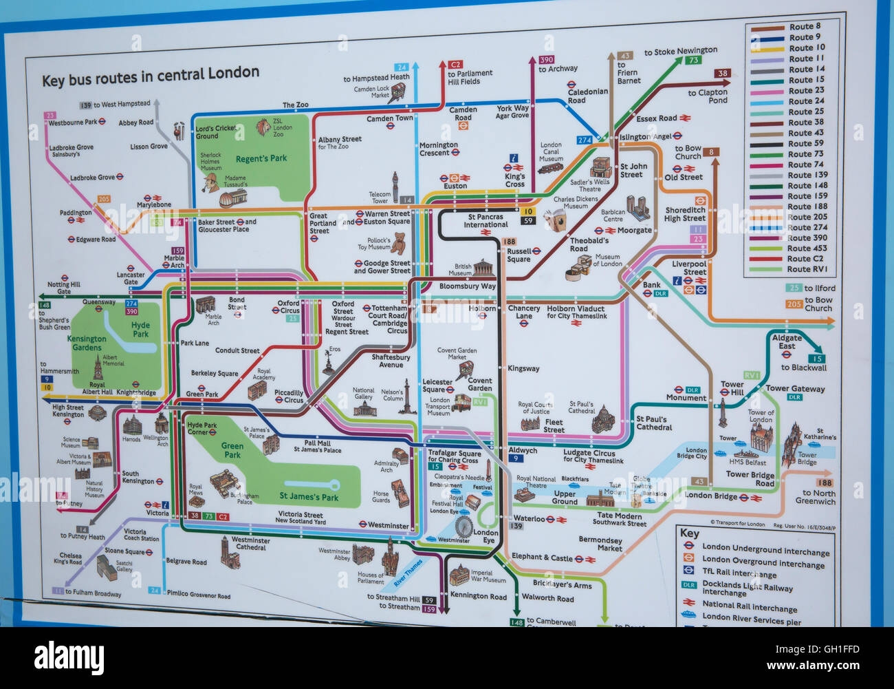 London UK 8th August 2016 Key Bus Routes In Central London Map In Trafalgar Square To Help Visitors From Around The World Find Their Way On Transport In Londo Credit Keith Larby Alamy