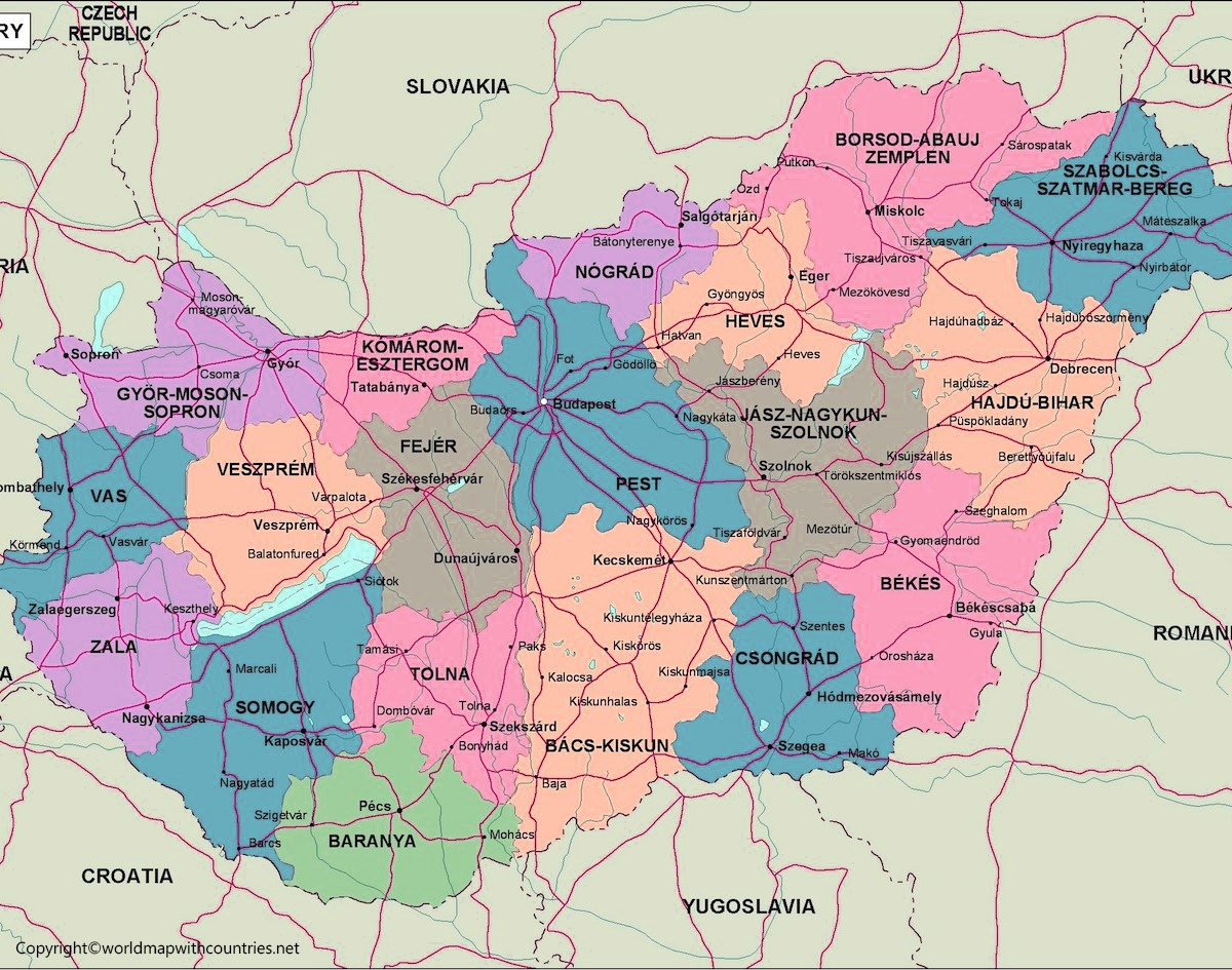 Free Printable Labeled And Blank Map Of Hungary In PDF