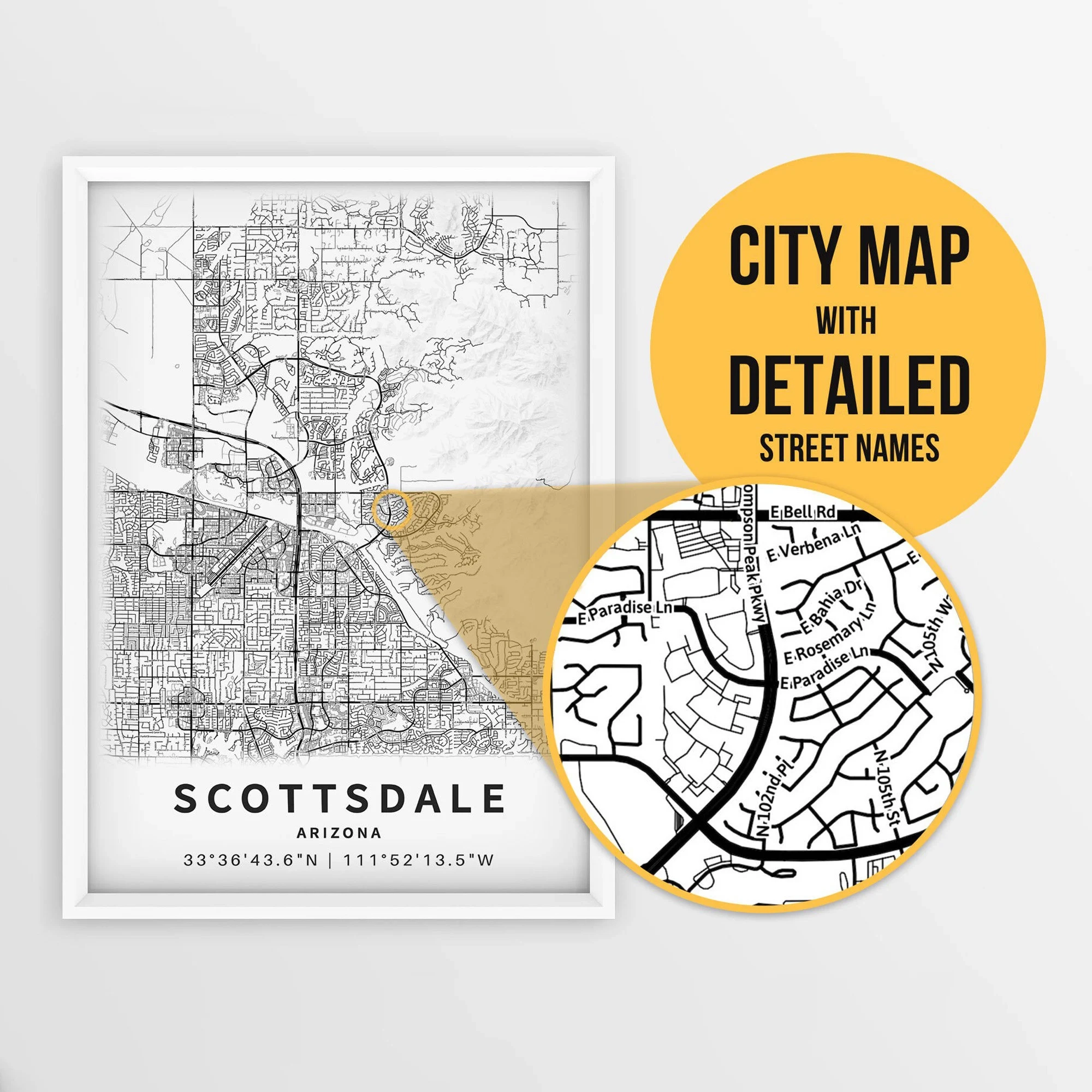 Printable Map Of Scottsdale Arizona USA With Street Names Instant Download City Map Travel Gift City Poster Road Map Print Etsy Finland