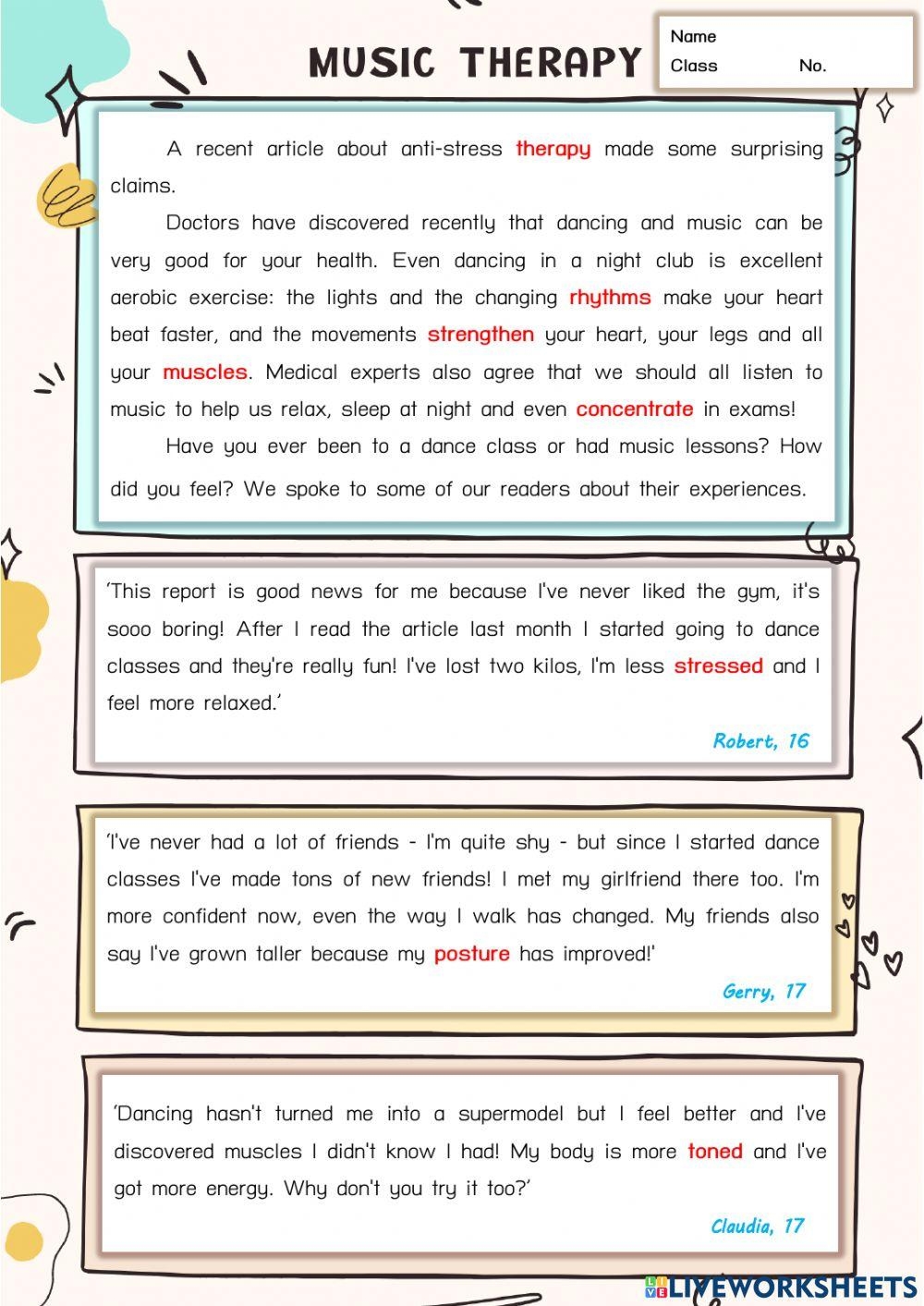 Music Therapy Free Interactive Worksheets 3483075