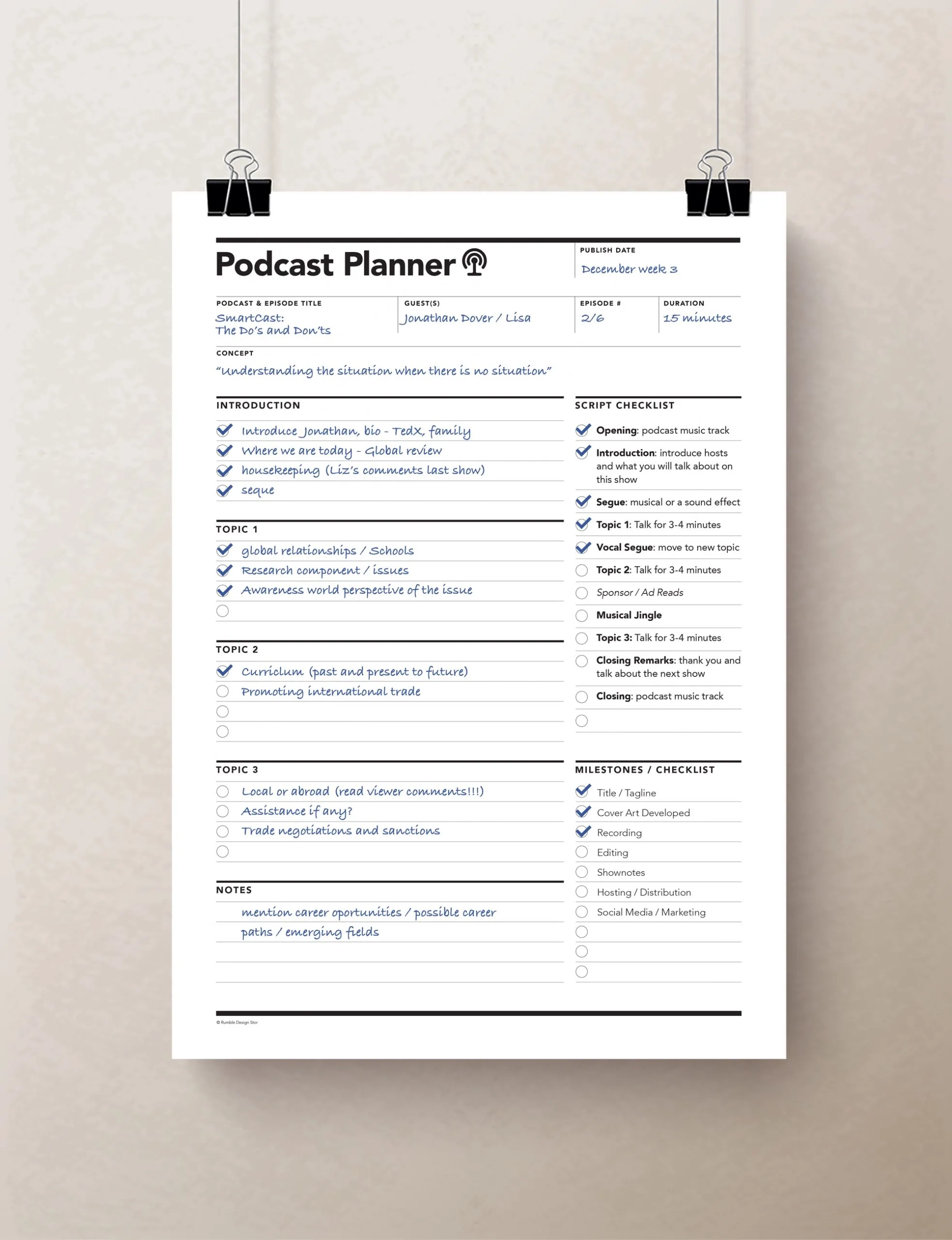 Podcast Content Planner Worksheet Rumble Design Store