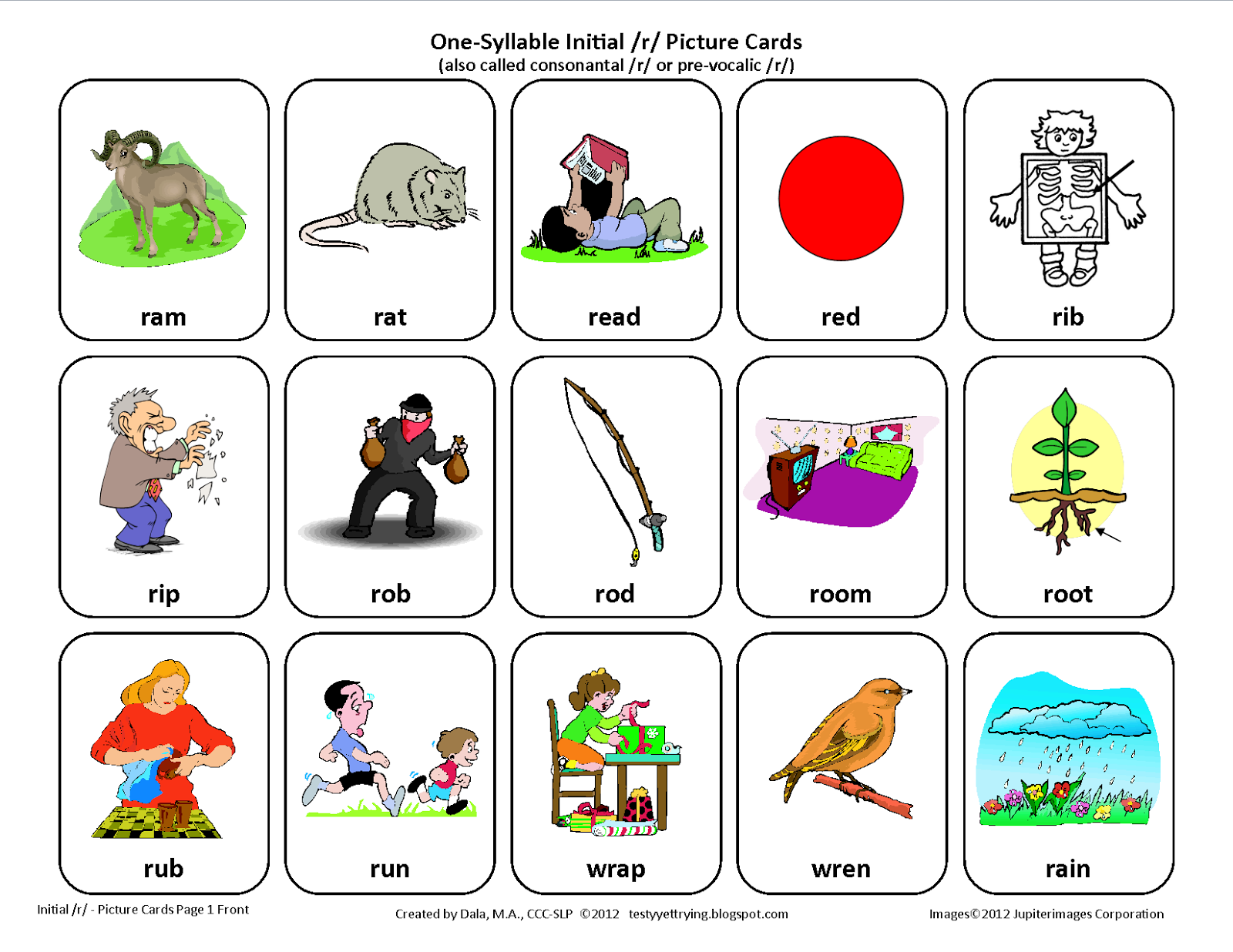 Testy Yet Trying Initial R Free Speech Therapy Articulation Picture Cards