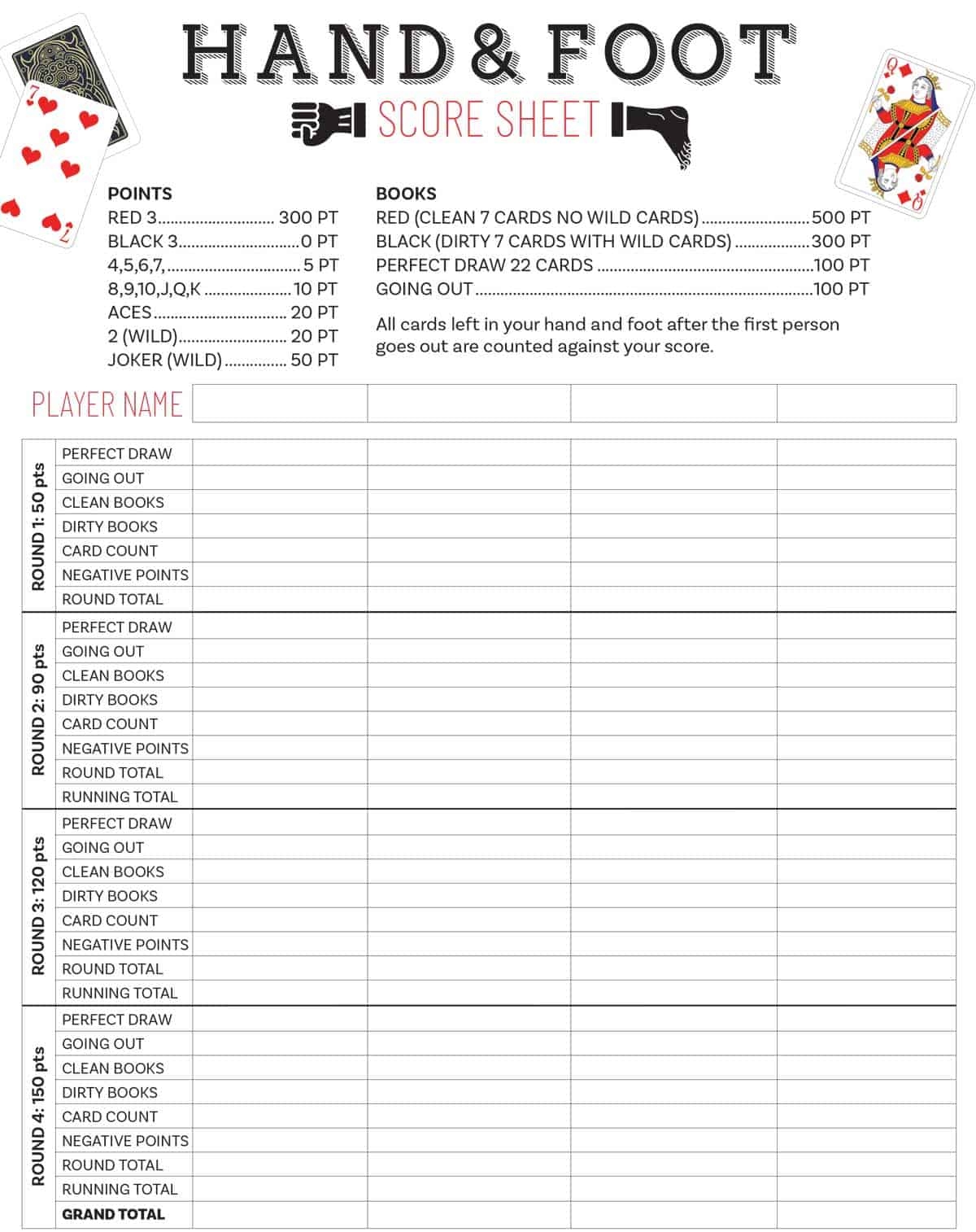 Not only is our score sheet practical, but it’s also visually appealing. The colorful design adds a touch of fun to your game night and makes keeping score feel like less of a chore. Simply print out as many copies as you need and you’re ready to start playing!