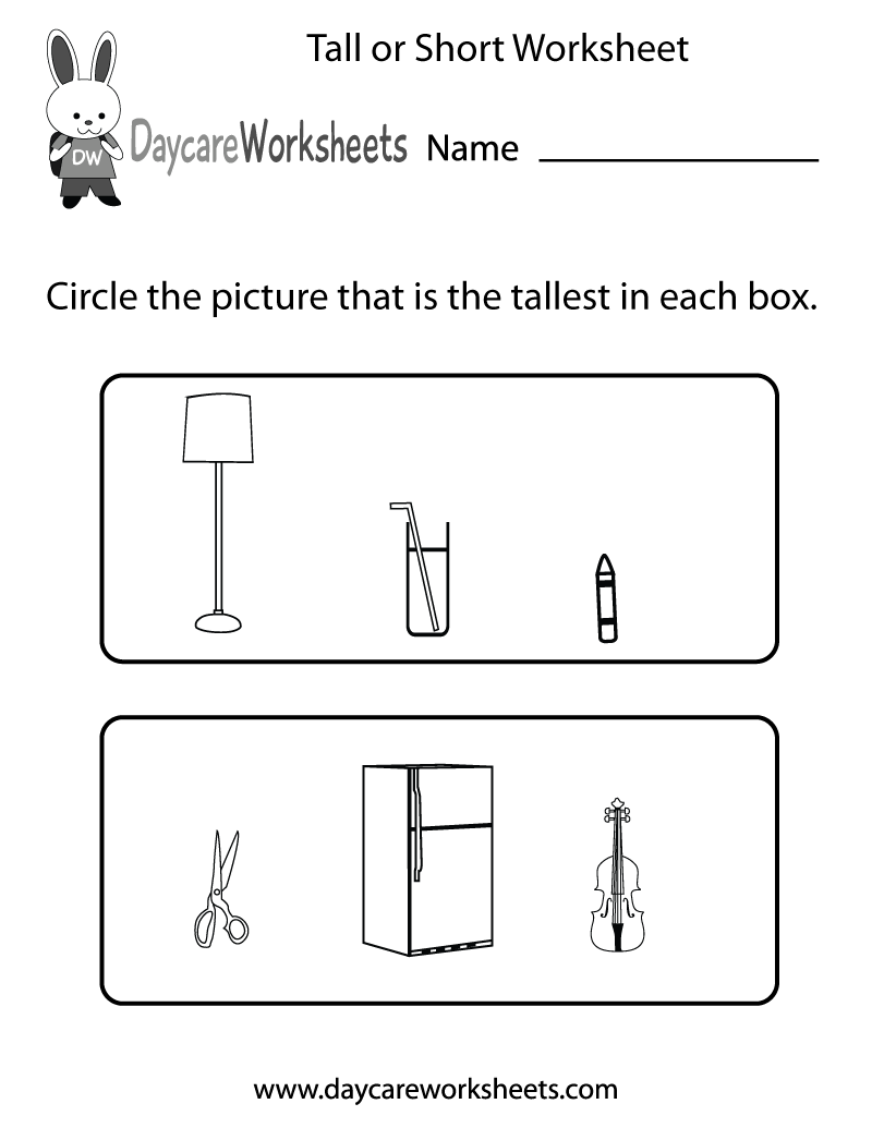 Free Preschool Tall Or Short Worksheet