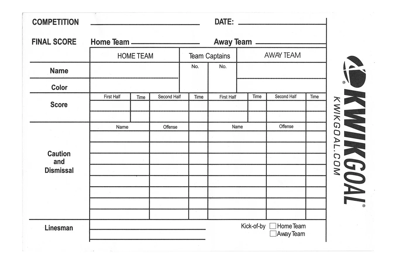 Kwik Goal Referee Score Sheets