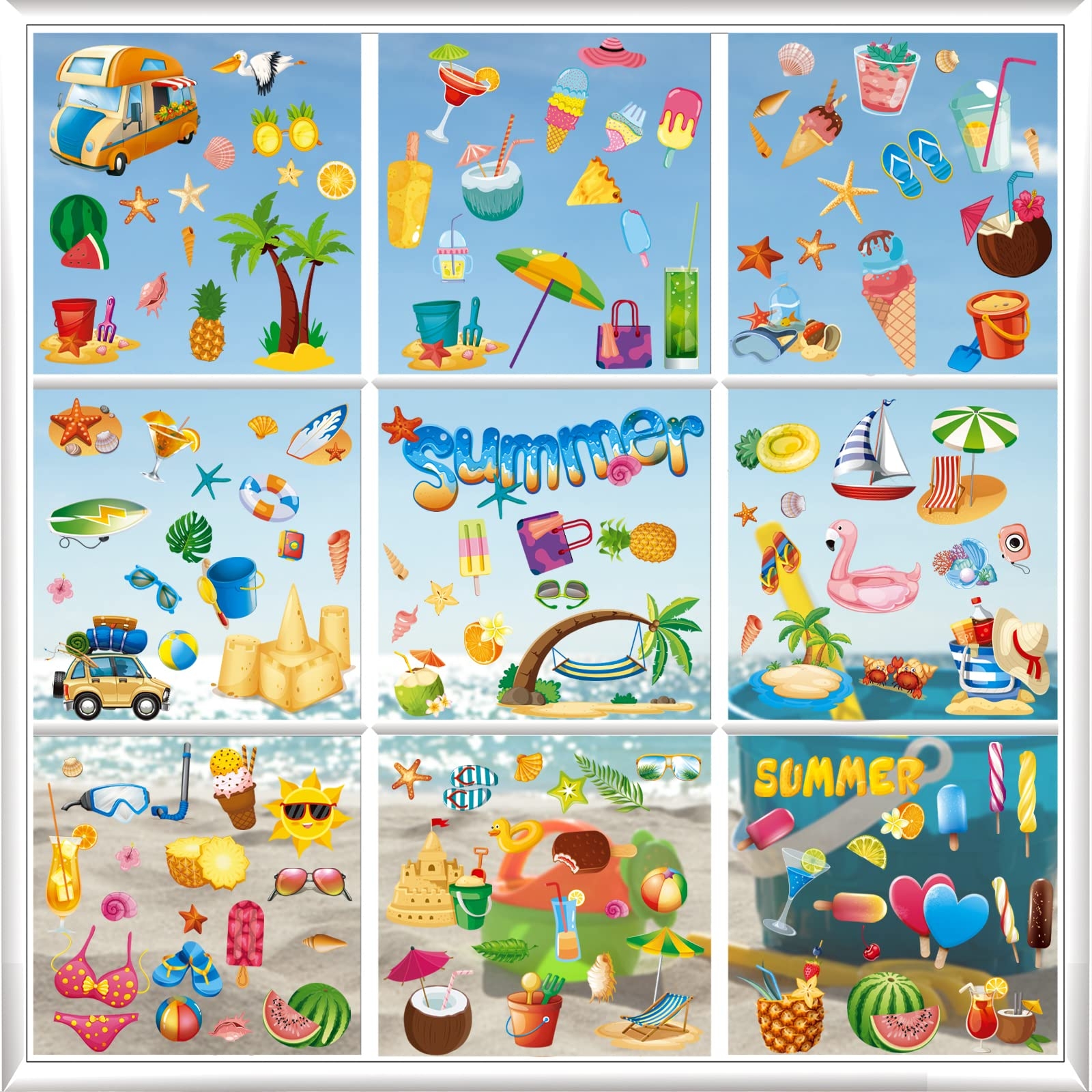 Amazon 134PCS Summer Window Clings Summer Window Clings For Glass Windows Summer Window Stickers For Window Decals Double Sided Beach Window Clings For Summer Decorations 9 Sheets Home Kitchen